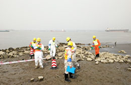 南京市棲霞區開展了游船應急事件演練。本次演練中,我公司主要負責河岸污染土壤區域的修復工作。