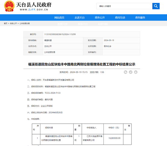 大地益源再傳捷報(bào),連續(xù)中標(biāo)兩固廢填埋場(chǎng)治理項(xiàng)目,加速布局垃圾處理新篇章