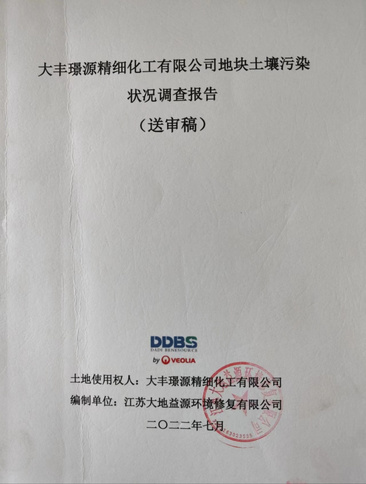 大豐璟源精細(xì)化工有限公司地塊土壤污染狀況調(diào)查報告